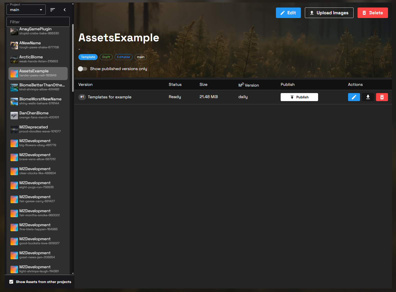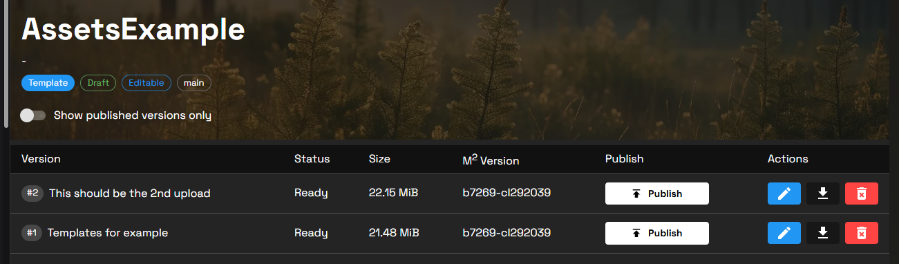 You have now created a new Template Assets with an initial Assets Version uploaded and can being managing the template.