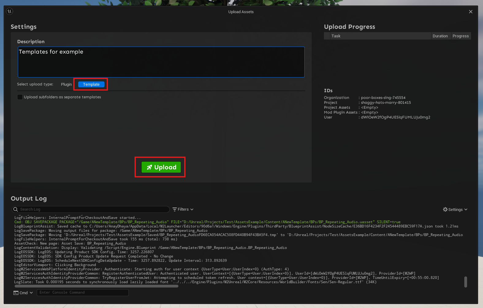 Upload more than 1 template from a single uproject.