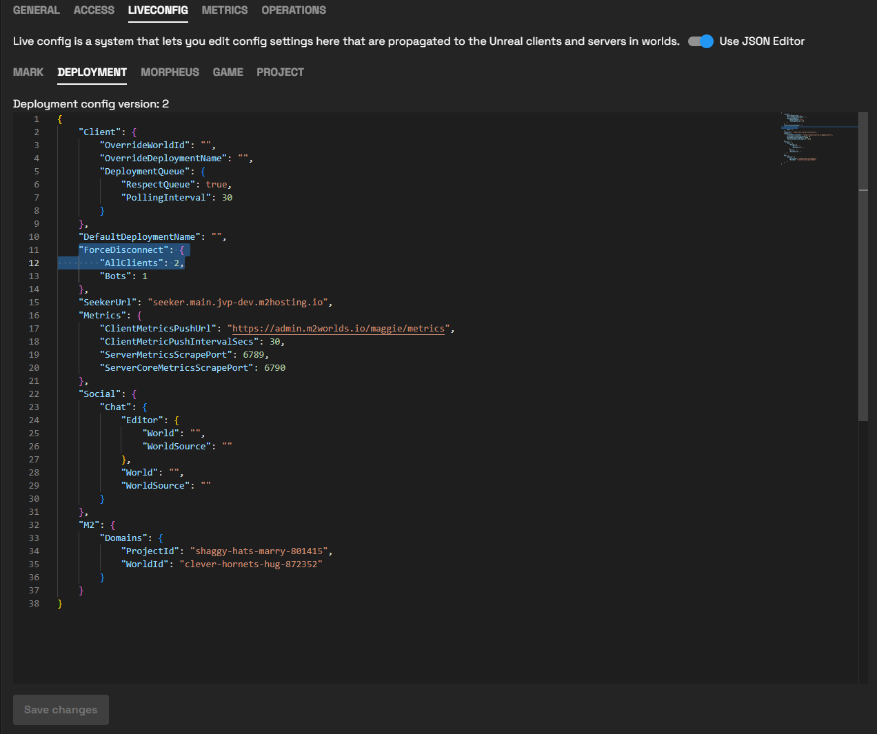 Once saved, **increment** the `AllClients` value , found under `ForceDisconnect` in live config. This will force all current clients connected to your main world to rejoin into your backup world: