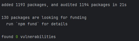 Navigate to the project directory in your terminal, and run: `npm i` . If successful, you should see output in your terminal that looks something like this (this command may find vulnerabilities; this can be safely ignored in most cases, but you are free to address these issues in your project should you wish):