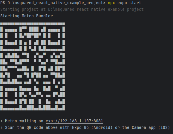 If this command does not work on your native device (e.g. your android phone), execute a different command in your terminal from your project directory: