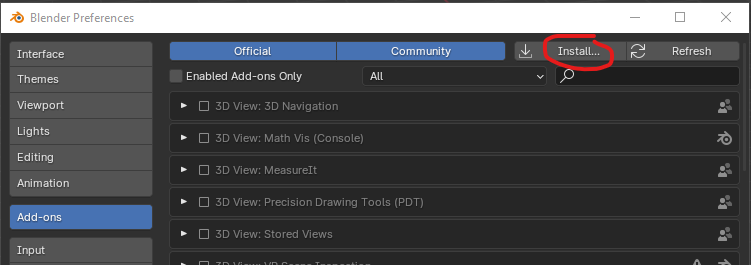 In Blender, go to Edit -> Preferences -> Add-ons and press the `Install` button