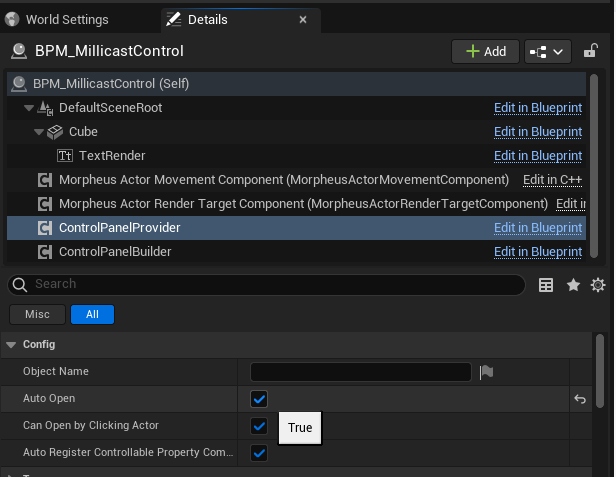 In the Details panel under the Config section for this actor, you can set up different Sets of control panels for Directors to easily open up without needing to select each one individually in the drop down menu. Sets are only used for **spawning**, **de-spawning** and changing the **colour** of the control panels.