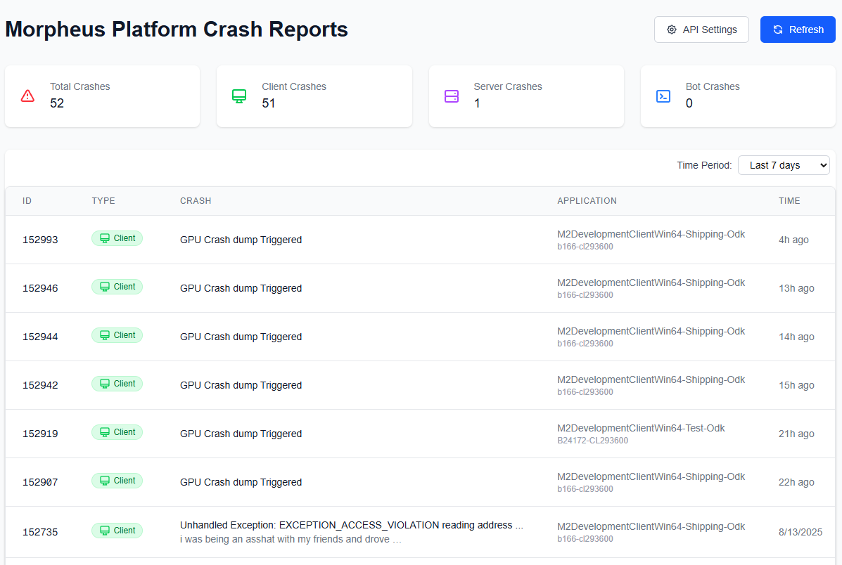 We provide a dashboard where you can see all recent crashes in your organisation and project: <https://crash-reports.preview.msquared.io/>