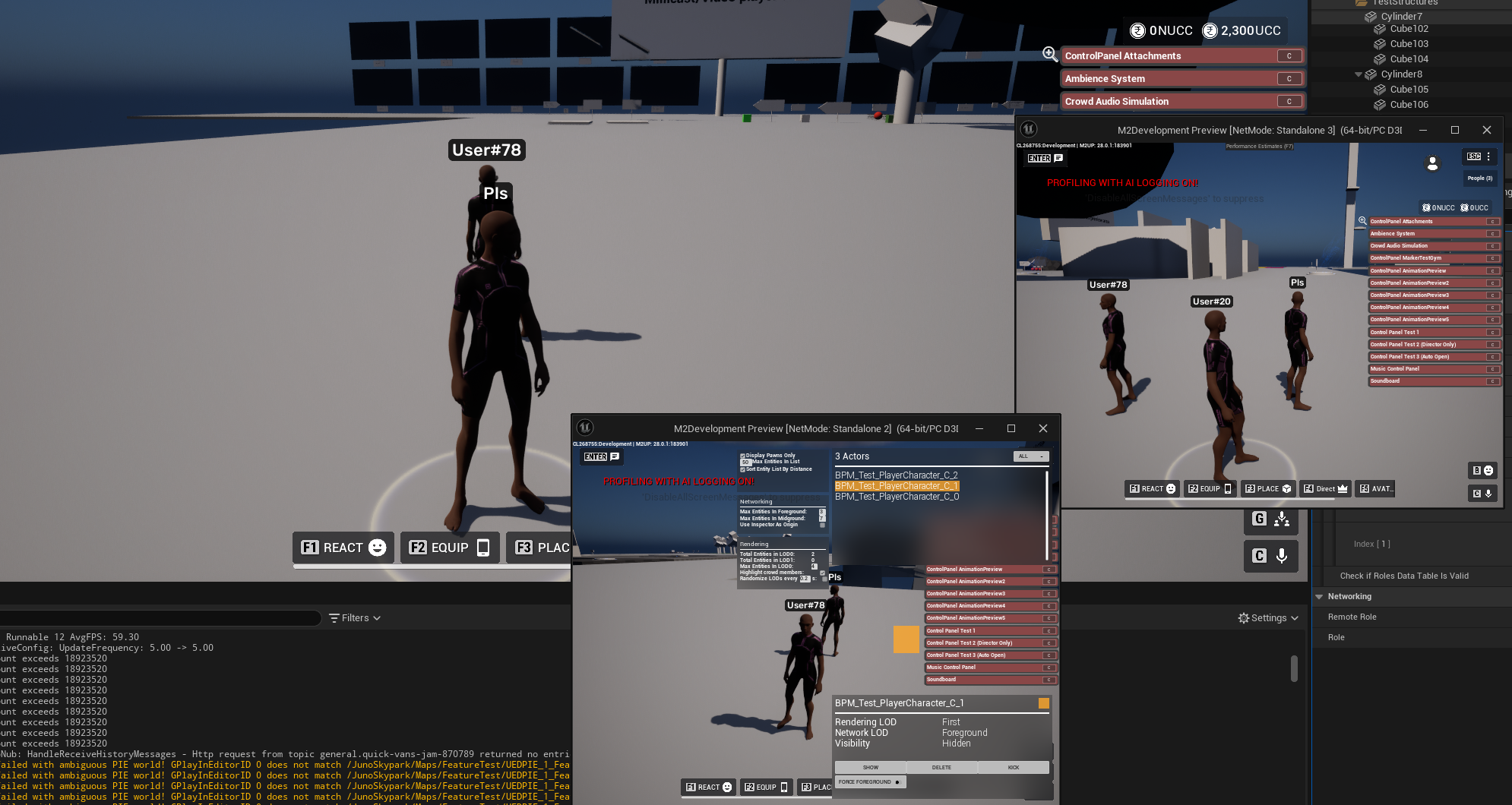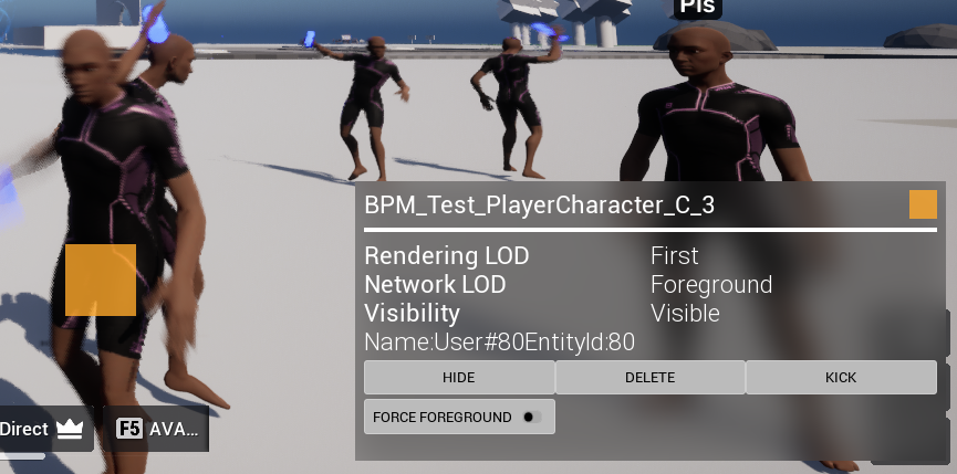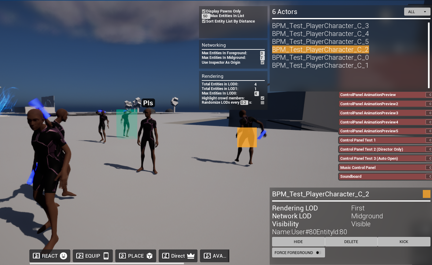 [X]s: If this is ticked, instead of using your camera's location to determine the rendering LODs, we randomize them every[X]seconds on your local machine. This can be used to make all the characters randomly shift their priorities, and so switch between LOD levels. You can use this to observe how characters behave when changing LOD levels (this can be useful for e.g. debugging Actor Pooling related issues)