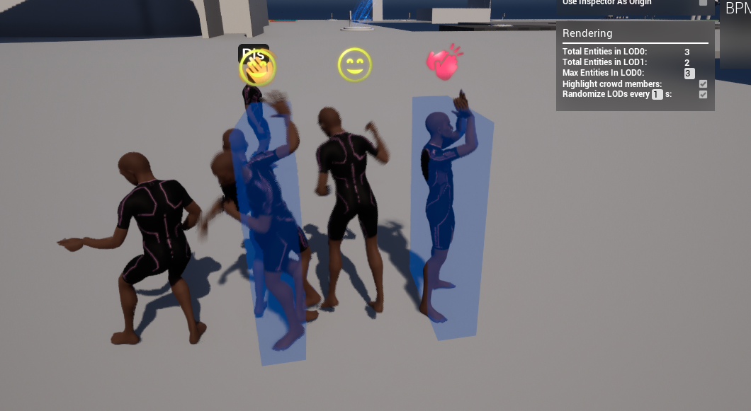AnimatedCrowd.Debug.DrawBoxes 1console command from Animated Crowd Console Commands.Randomize LODs every
