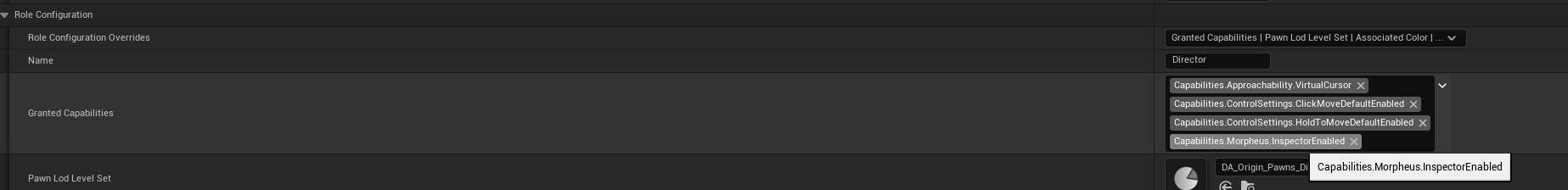 The server determines which players have permissions to open the Inspector. The default Inspector only allows permissions for users with the Director role (or any role/character with the Capabilities.Morpheus.InspectorEnabled capability) to open the Inspector.