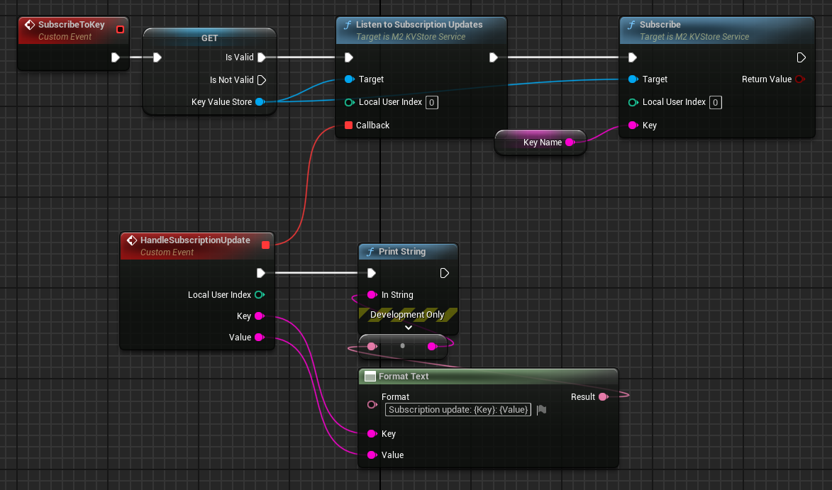 Since the `BP_M2_KVStoreService` depends on the Realtime Service, we need to wait for them to be ready before fully initializing the KV Store Service. If you call `Subscribe` or `Unsubscribe` too early, the request could fail due to this not being ready.