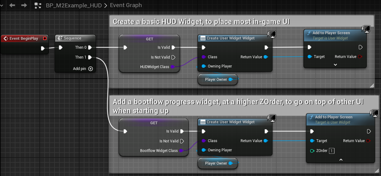 ExampleMaphas some basic UI in it, which can be used as a reference or starting point for downstream projects.Setting up your HUD