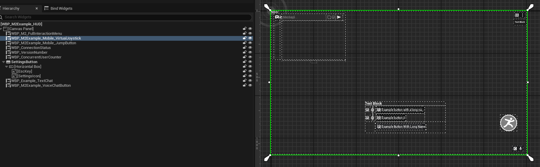 This "HUD widget" contains a canvas panel with all the on-screen widgets added, positioned and anchored to the screen how they are intended to show up in-game.