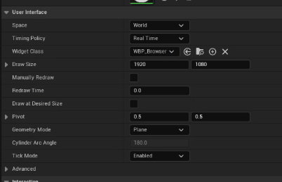On this widget component, set the `Widget Class` to your browser widget, and change the `Draw Size` to 1920 x 1080.