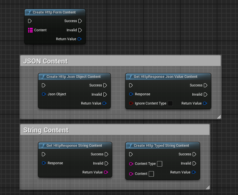 JSON Content can be created from either a `Json Object` or a `Json Value` (see [JSON Handling](https://docs.msquared.io/creation/unreal-development/features-and-tutorials/web-services/working-with-json))