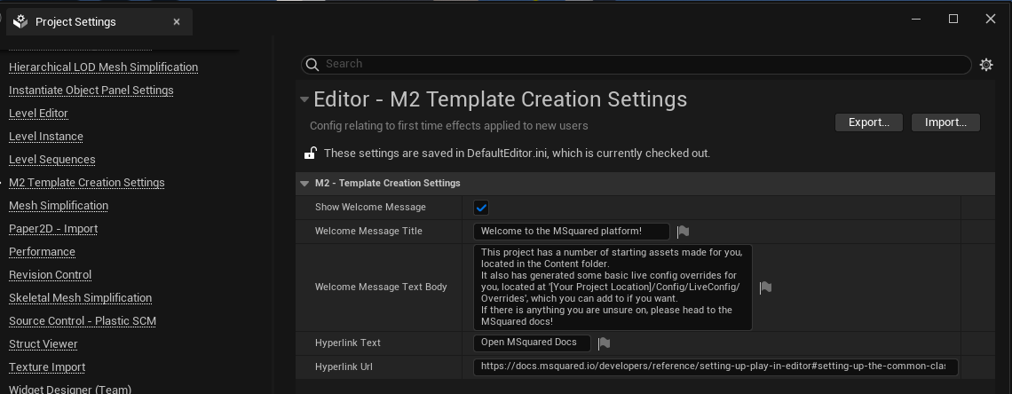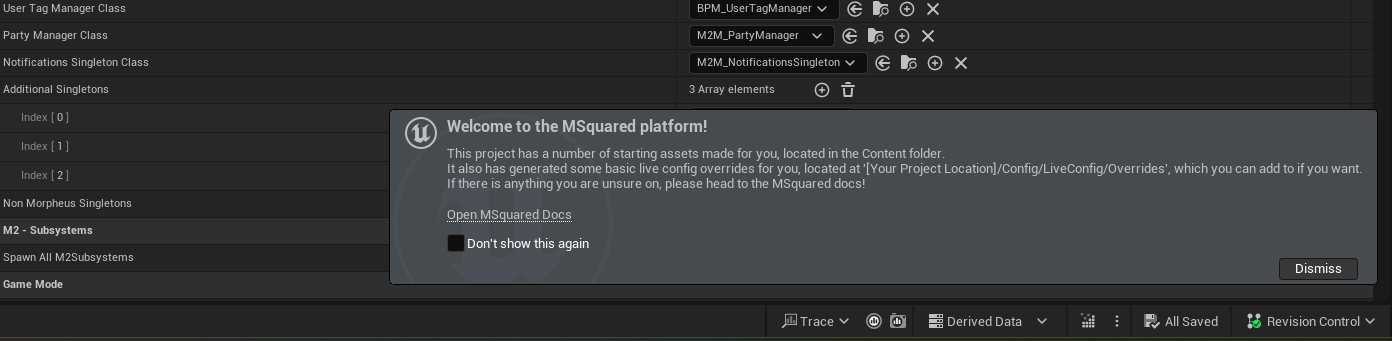 The `M² Base Project` also contains [live-config](https://docs.msquared.io/creation/unreal-development/features-and-tutorials/live-config "mention") files, which act as the starting point for making changes to MSquared's default values.