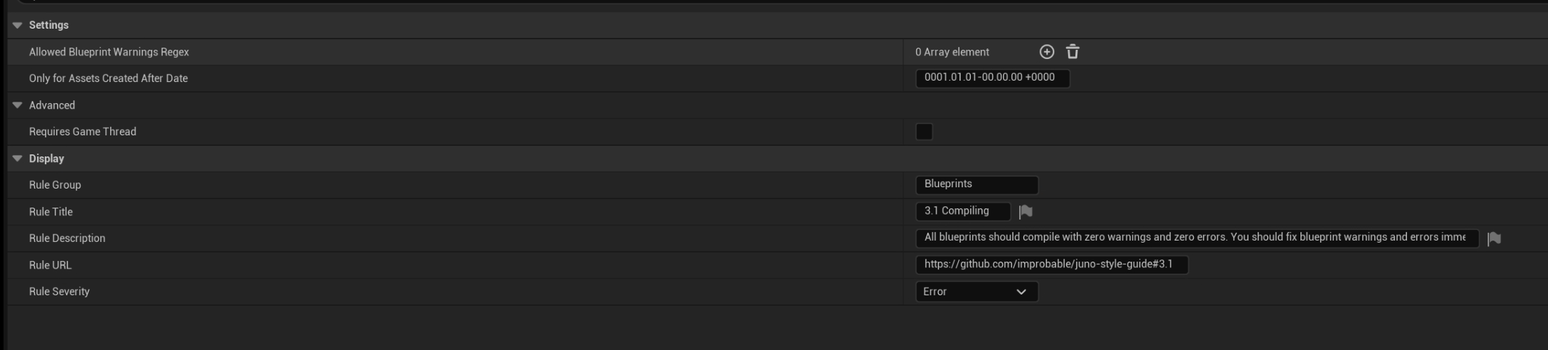 If there are warnings and you are not yet ready to remove the content, you can get the linter to ignore these for the time being. To do this, you’ll need to ensure your linting rules use a modified version of `JLR_BP_Compiles` and you need to add the specific strings to be ignored in the “Allowed Blueprint Warnings Regex” array. This will not work once we fully remove the underlying C++, so please plan accordingly.