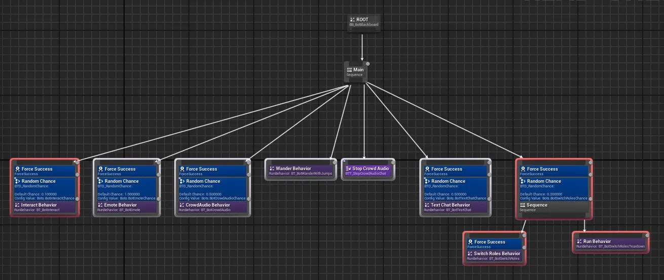 The bot “roles” and “interact” behaviors have been removed from the `BT_BotBehavior`, since the functionality they were testing has been deprecated.