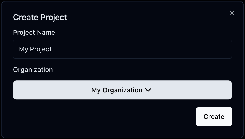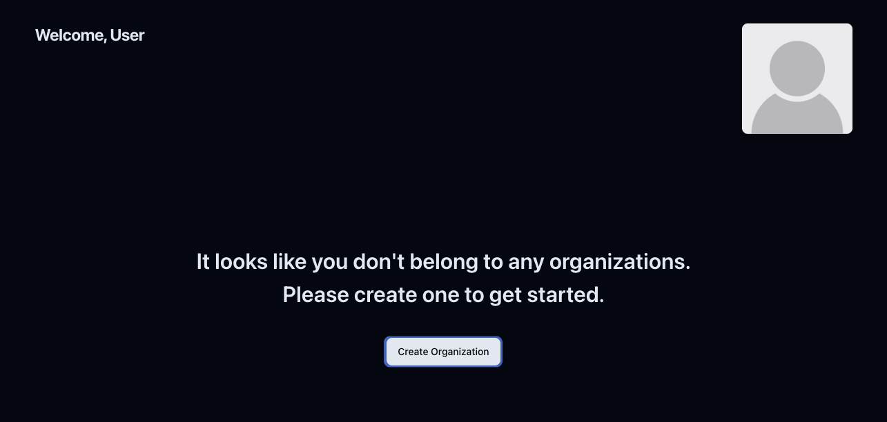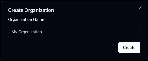 When you click Create Organization, a modal window will pop up, and you can enter an organization name.