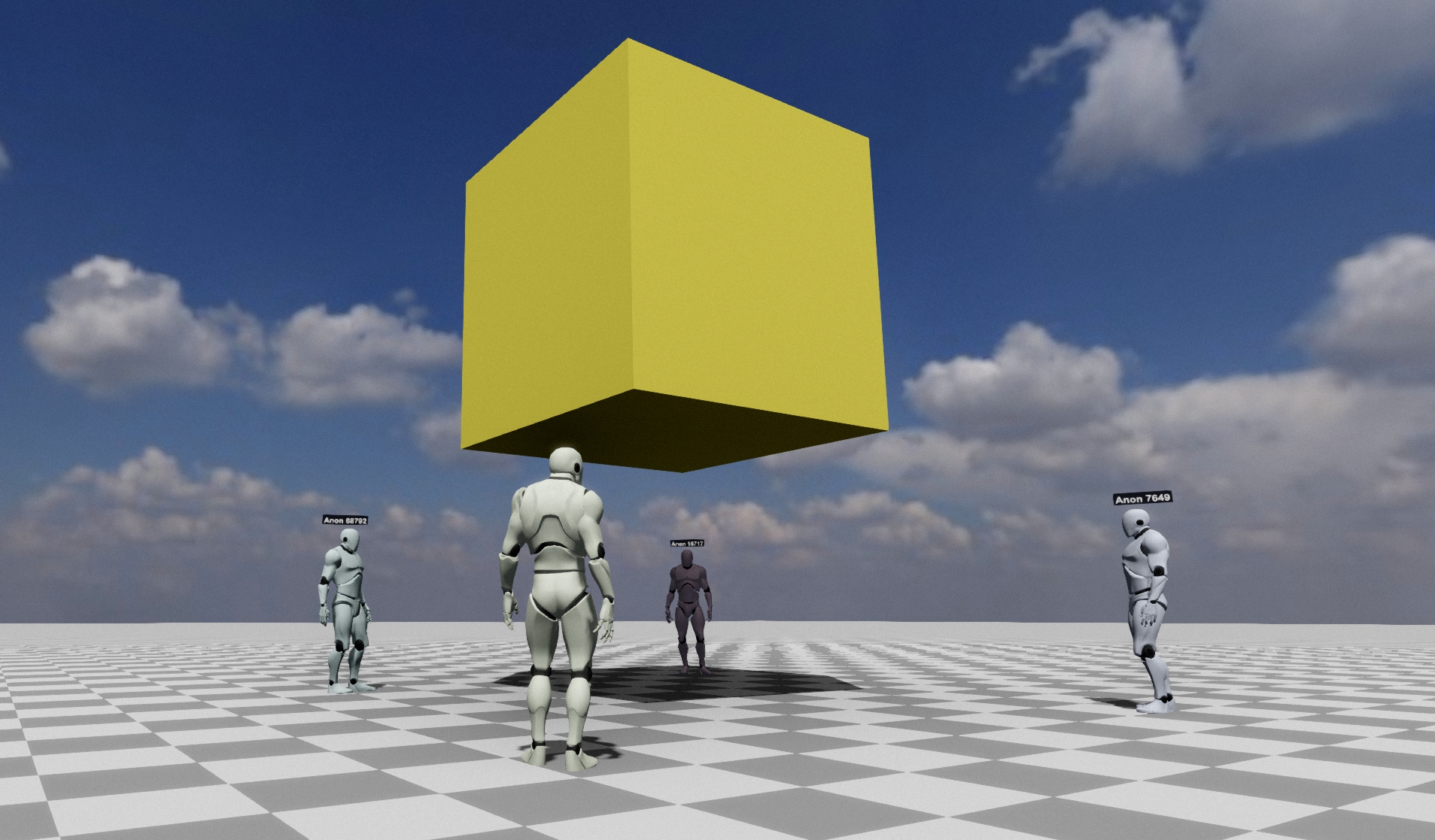 </script>Now, you or anyone else can click on the cube, which will change color in real time for all the users who have joined the world.
