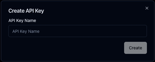 A modal will open where you can enter your API key name. Since it can't be changed, name it memorable.