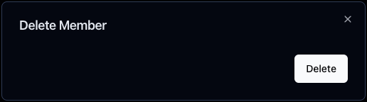 You can also delete a user from the user info page. Click on a user to be redirected to the Member Info page. On that page, you can click the button with the bin icon, and a confirmation modal will pop up. Click on Delete to confirm.