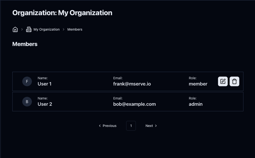 Admins can delete members on the members list page. To do so, click on the bin icon to the right of the role.