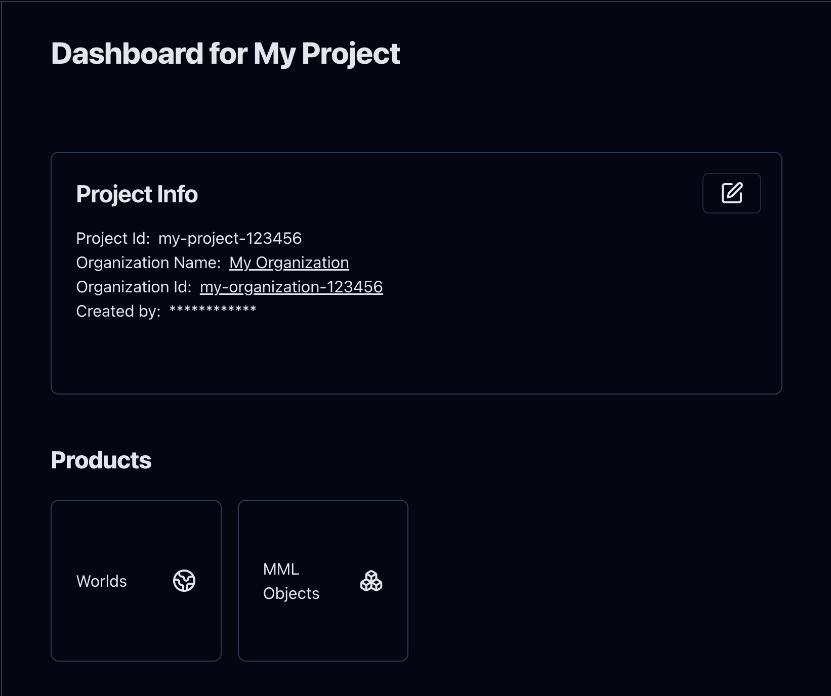 You can access the project dashboard by selecting a project on the home page (you can reach it by clicking MSquared at the top left of the screen) or going to your organization dashboard by clicking on your avatar on the top right of the page, Account & Settings, then Projects on the left.