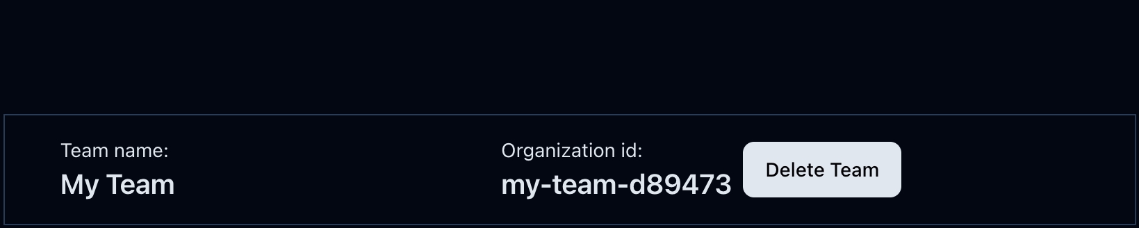 You can delete a team from the team dashboard, by simply clicking on Delete Team on the right of the team name and organization ID on your team element.